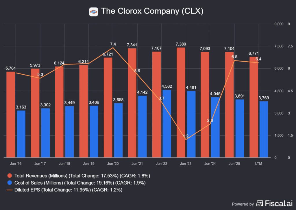 That said, we may have been a bit harsh on Clorox. The company is approaching Dividend King status, but management has yet to build consistent credibility over the past decade. Payout ratios remain high, and improvement is unlikely in the near term, aside from a potential sales recovery next quarter linked to the ERP implementation.